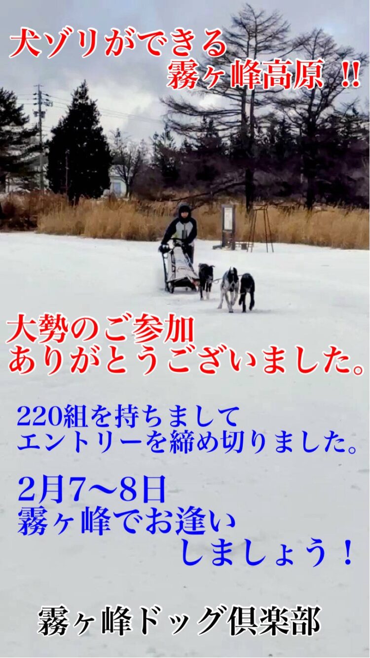 第4回霧ヶ峰犬ぞりレース大会エントリーを締め切りました。